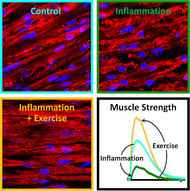 "When exercising, the muscle cells themselves were directly opposing the pro-inflammatory signal induced by interferon gamma, which we did not expect to happen," said Bursac. "These results show just how valuable lab-grown human muscles might be in discovering new mechanisms of disease and potential treatments. There are notions out there that optimal levels and regimes of exercise could fight chronic inflammation while not overstressing the cells. Maybe with our engineered muscle, we can help find out if such notions are true."